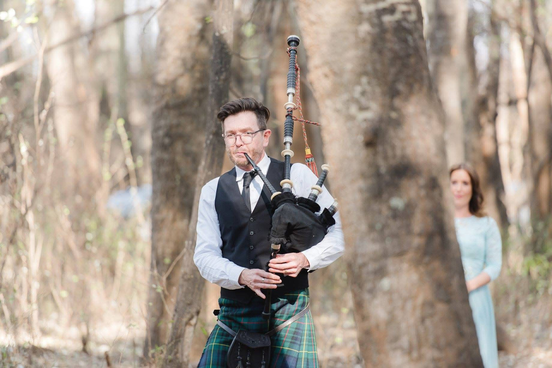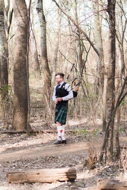 Stuart performing at a wedding, and piping in the bridal party